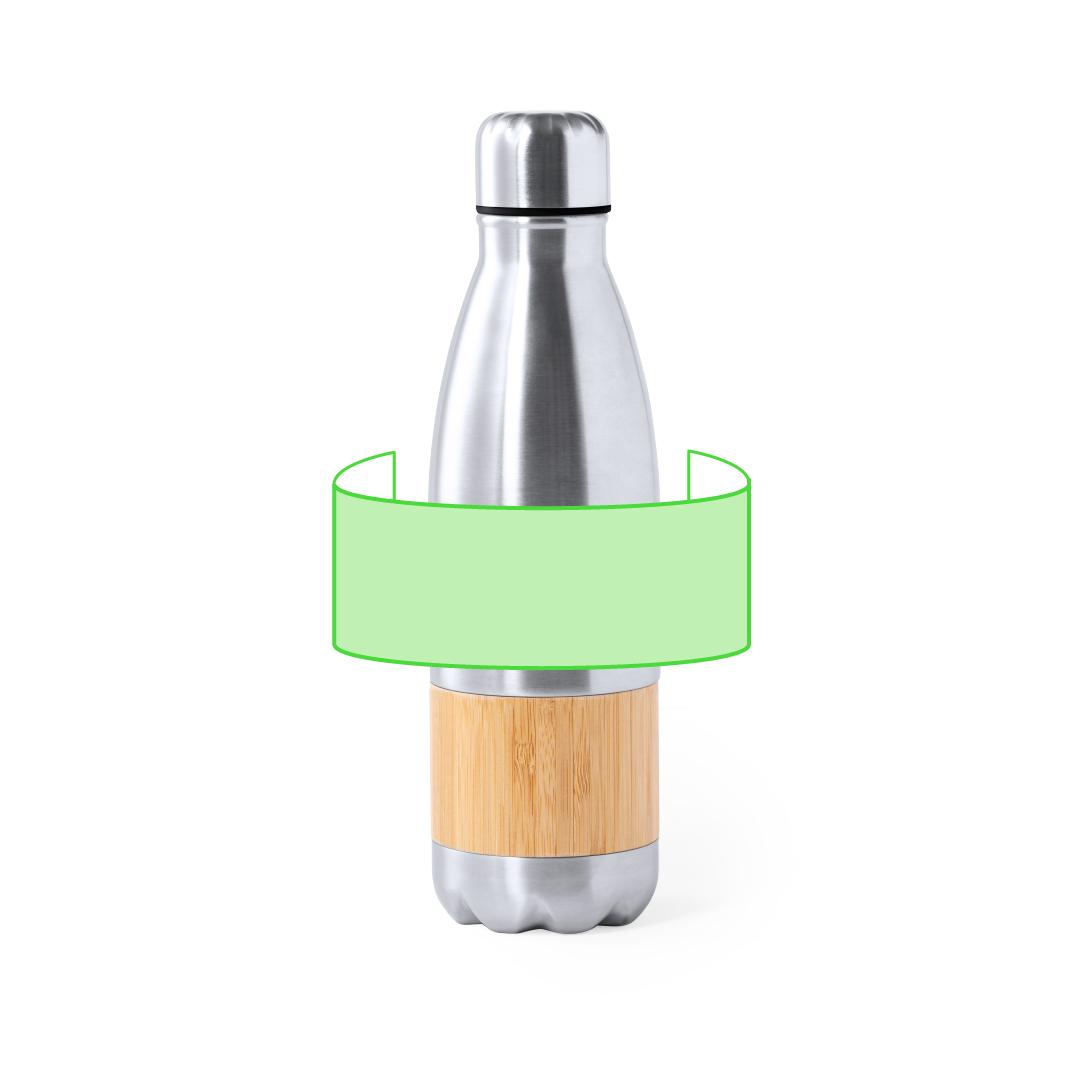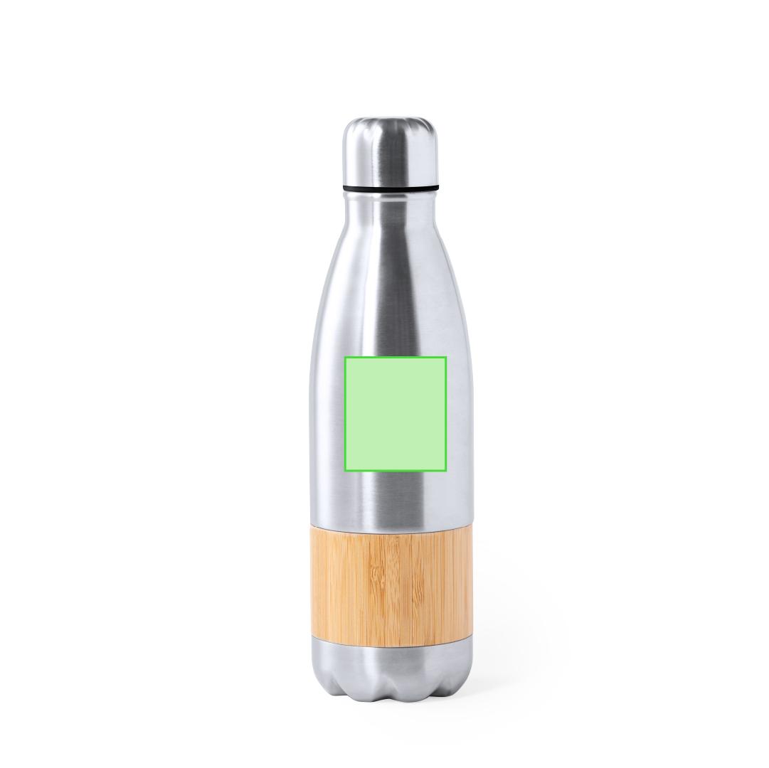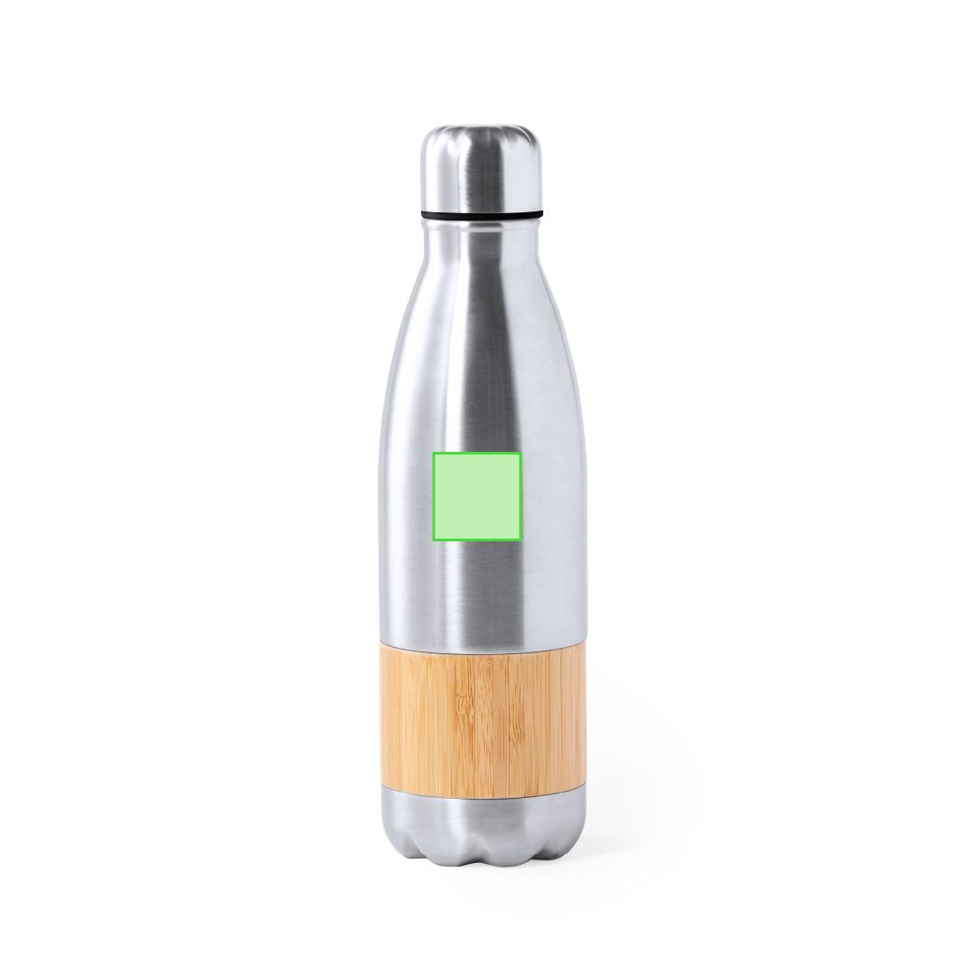 Bidón de línea nature, en combinación de materiales acero inox de acabado mate y bambú. 750ml de capacidad, con tapón de seguridad y presentado en atractiva caja de diseño eco.