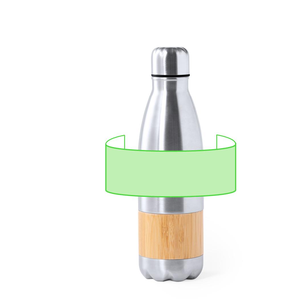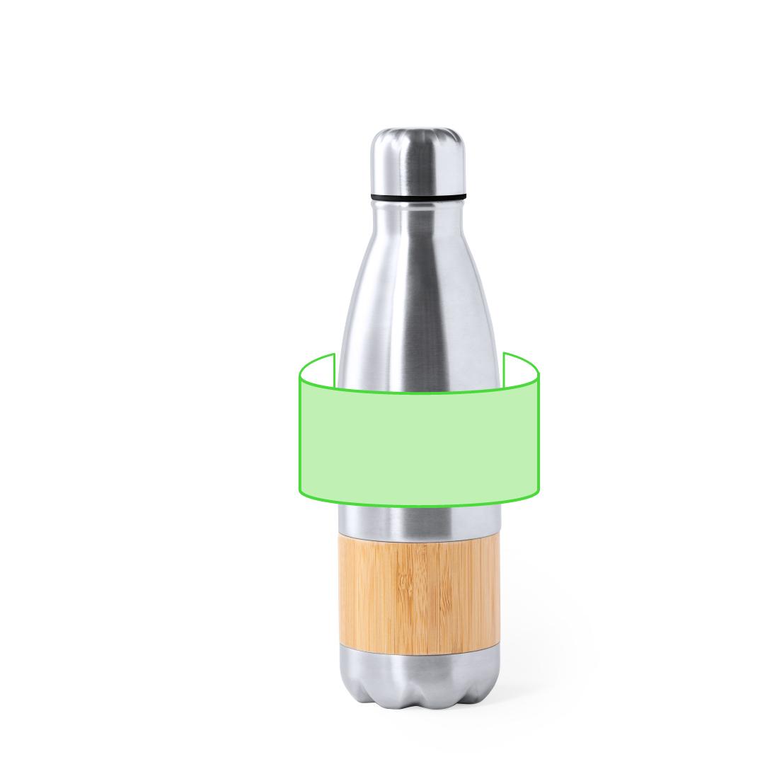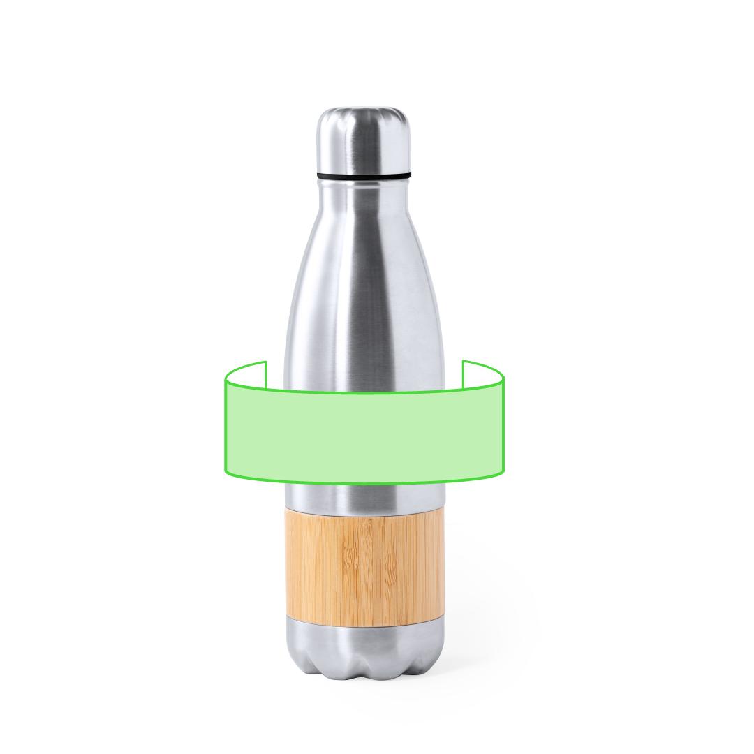 Bidón de línea nature, en combinación de materiales acero inox de acabado mate y bambú. 750ml de capacidad, con tapón de seguridad y presentado en atractiva caja de diseño eco.