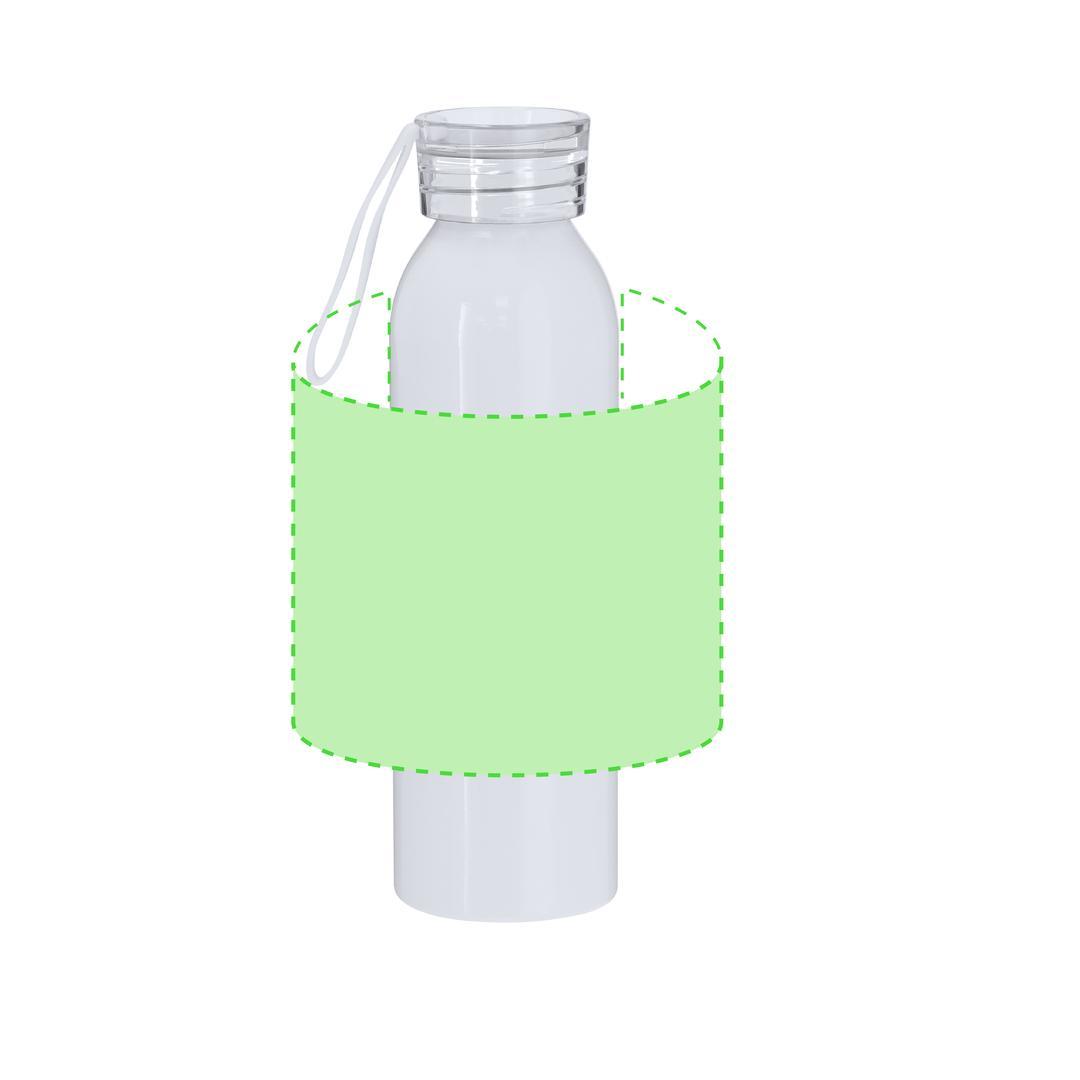 Bidón de 650 ml de capacidad fabricado en resistente aluminio. En color blanco brillante, especialmente diseñado para la sublimación. Con tapón a rosca translúcido y correa a juego para un sencillo transporte. Libre de BPA.