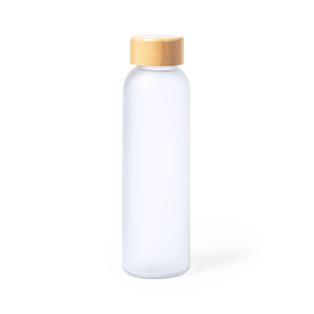 Bidón de línea nature y 500 ml de capacidad, fabricado especialmente para marcaje en sublimación. Cuerpo fabricado en cristal, con tapón a rosca de bambú y libre de BPA. Presentado en caja individual de diseño eco.