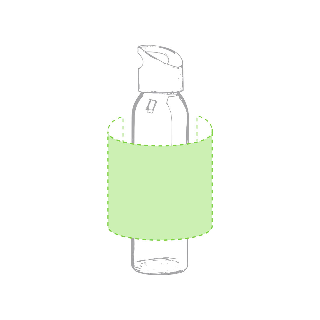 Bidón de 470ml de capacidad. Fabricado con cuerpo de cristal y disponible en variada gama de colores. Tapón a rosca en PP, libre de BPA, a juego. Presentado en caja individual de atractivo diseño.