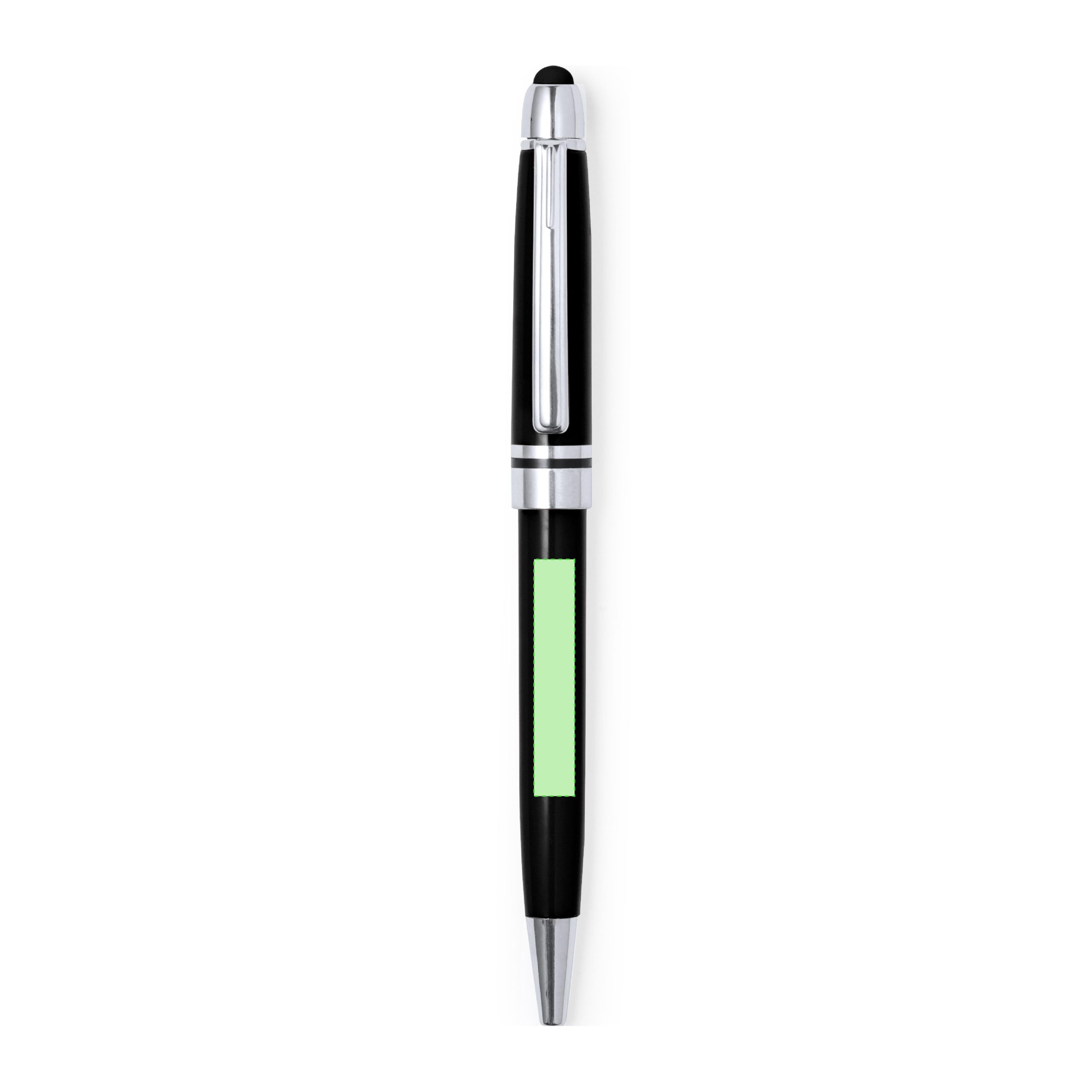 Bolígrafo puntero de colorido diseño, con cuerpo en vivos colores brillantes a juego con el puntero. De mecanismo pulsador, con detalles cromados y clip metálico. Cartucho jumbo y tinta azul.