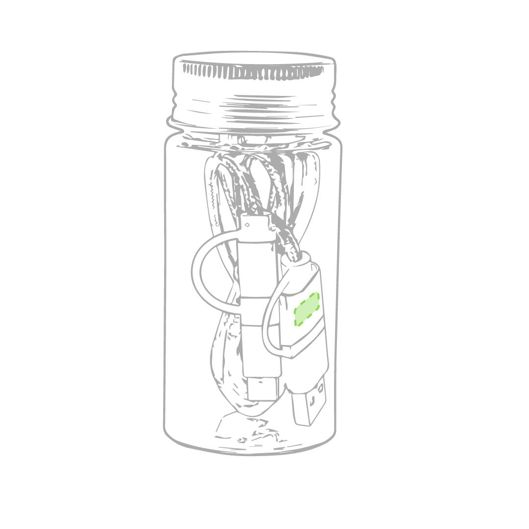 Cable cargador con conexión dual micro USB/Lightning y tipo C (entrada y salida). De 100cm de longitud, con conectores de aluminio y especialmente diseñado para marcaje en láser. Presentado en atractivo bote transparente con tapa a rosca.