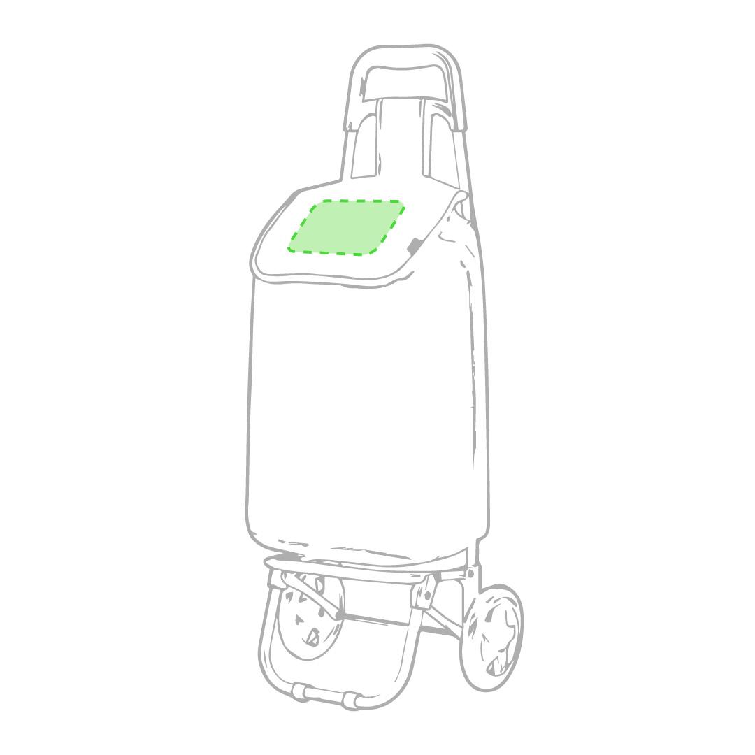 Carro de compra plegable y línea nature. Fabricado en resistente poliéster 600D RPET, elaborado a partir de plástico reciclado, para así fomentar la reutilización de residuos plásticos y ayudar a la sostenibilidad del planeta. Con asa reforzada, cuerpo metálico tubular, bolsillo de cremallera posterior y soportes con gomas de protección. Ruedas reforzadas de alta calidad. Etiqueta distintiva RPET en la solapa.