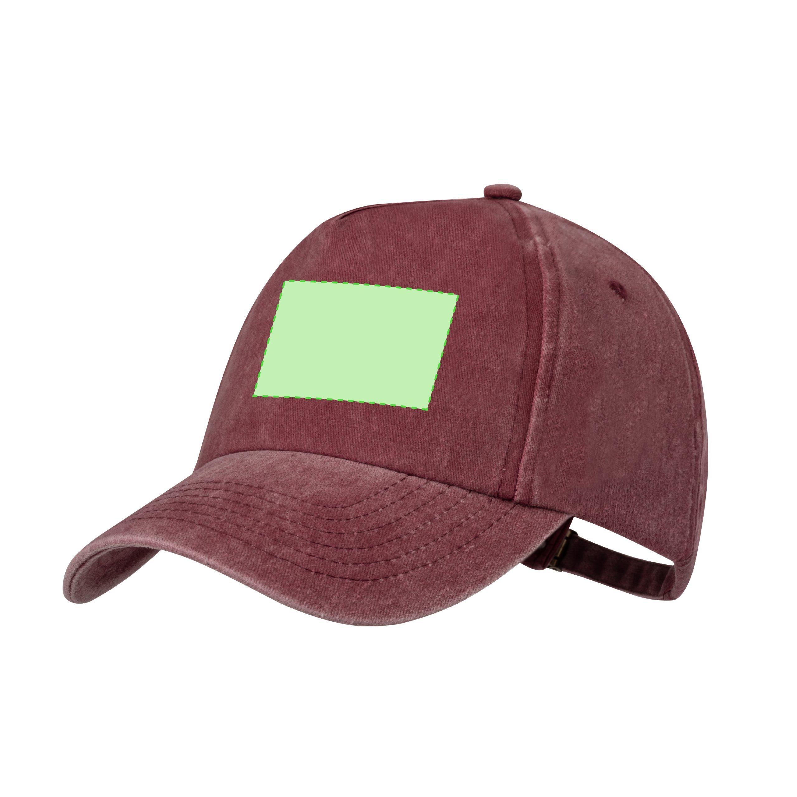 Gorra de 5 paneles de acabado efecto lavado. Fabricada en suave algodón 100%, con orificios de ventilación bordados. Con cierre trasero ajustable de hebilla metálica y disponible en variada gama de colores naturales.