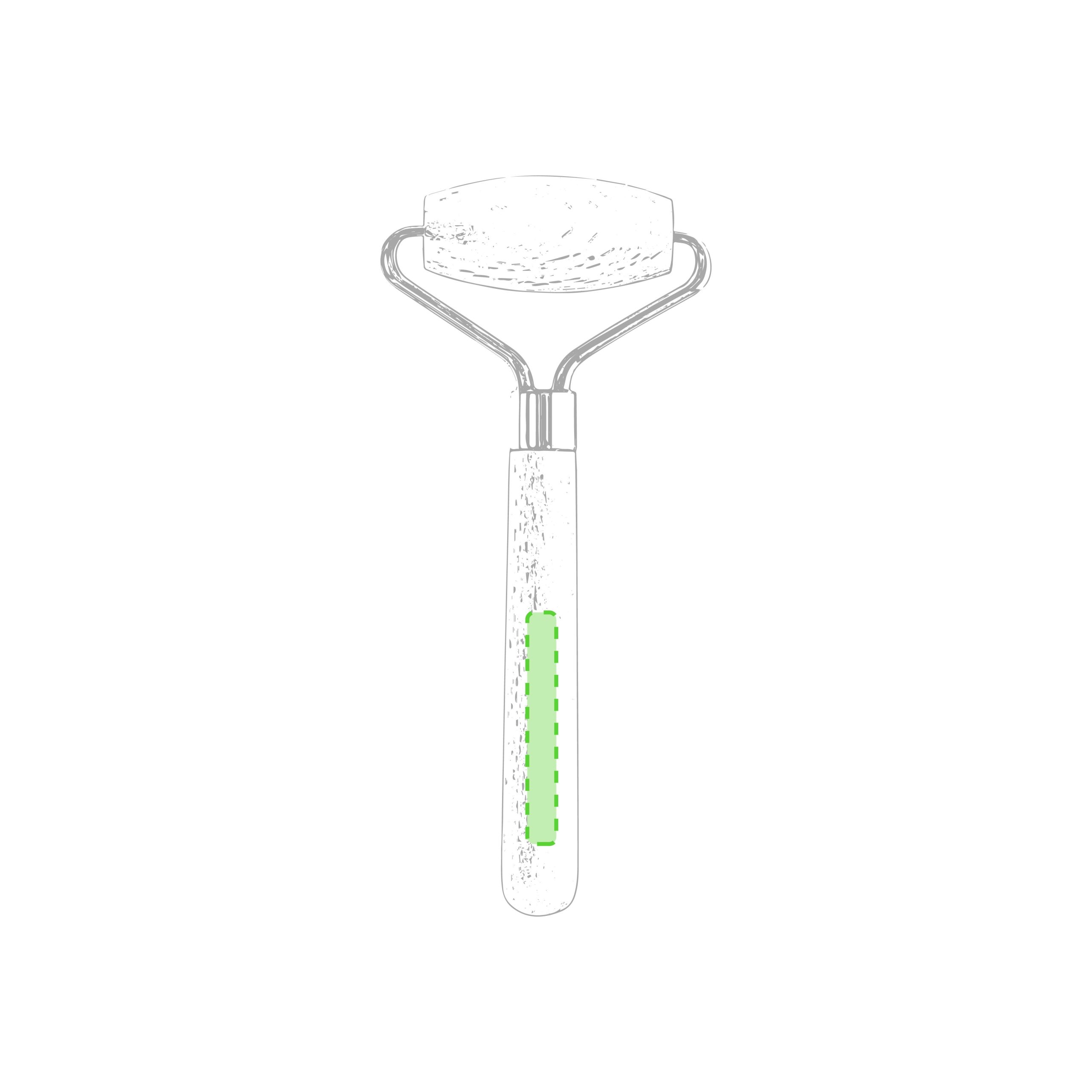 Rodillo masajeador facial en madera natural, favoreciendo el cuidado del rostro y con efectos relajantes. Presentado en caja individual de diseño eco en cartón kraft.