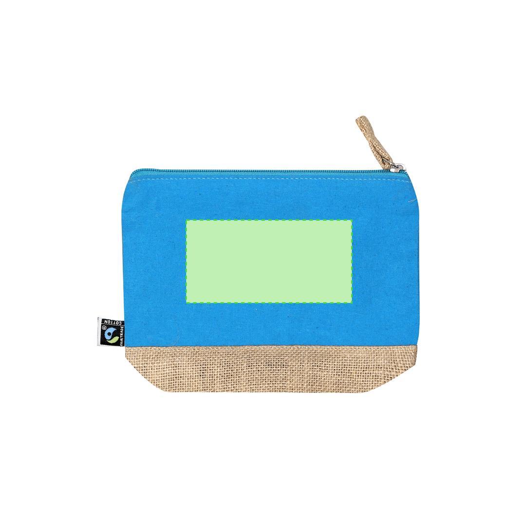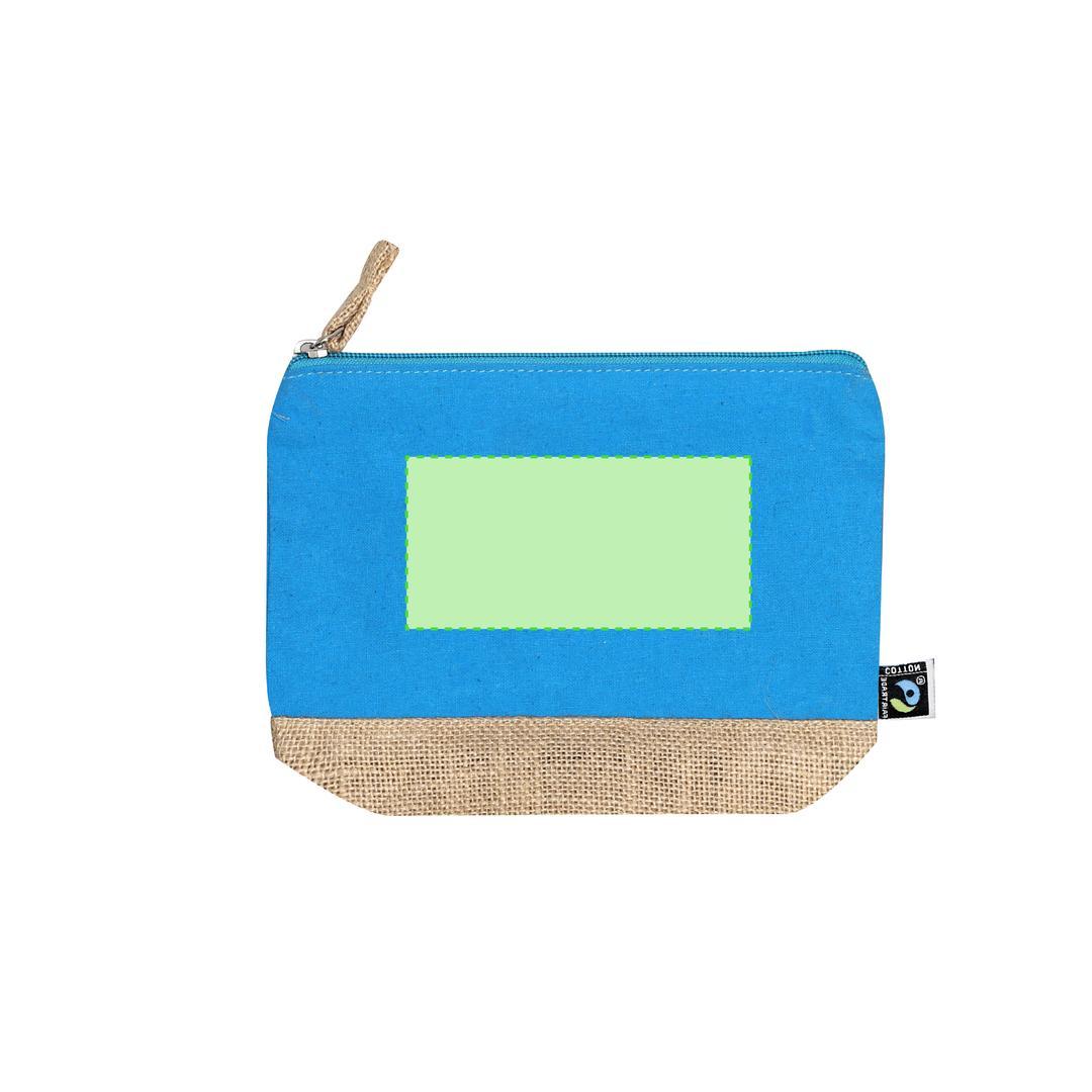 Neceser fabricado en combinación de algodón y yute laminado con certificación Fairtrade (Comercio Justo), un sistema comercial solidario y alternativo al convencional que persigue el desarrollo de los pueblos y la lucha contra la pobreza.Incluye compartimento principal con cierre de cremallera y tirador metálico, con base en tono natural yute y se complementa con una parte frontal superior en algodón en colores. Con práctico cordón para agarre. Incluida etiqueta Fairtrade y etiqueta con logotipo en cartón reciclado.