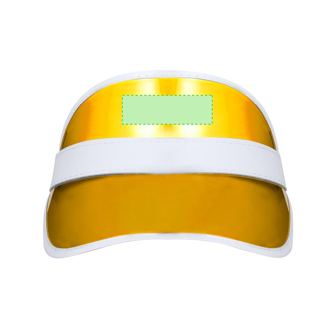 Original visera de PVC con protección UV. Acabada en colores transparentes en combinación con detalles de color blanco. Con cinta elástica ajustable y disponible en variada combinación de colores.